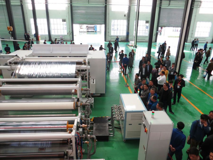 下午,與會人員參觀了新樂華寶塑料機械有限公司流延設(shè)備開機演示。